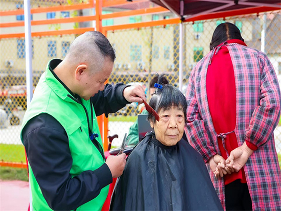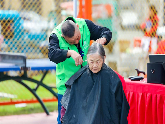 从调整发长到修剪刘海,从梳理造型到清理碎发,理发师傅们一丝不苟,根据每位老人的脸型、发质特点量身设计发型。当天,共有30多位老年人享受到了这场“家门口的福利”,原本有些凌乱的头发经过修剪后变得整洁利落,老人们对着镜子露出满意的笑容,连连称赞:“不用出门就能剪头发,师傅手艺还好,真是太方便、太贴心了!”