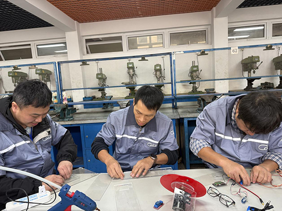钟亮、沈张松、毛成萍老师合作设计《汽车冷却系统可视化自动循环演示教具》,通过巧妙的可视化设计,将抽象的冷却系统工作原理转化为清晰可见的动态过程,有效破解了传统教学中的讲解难题。