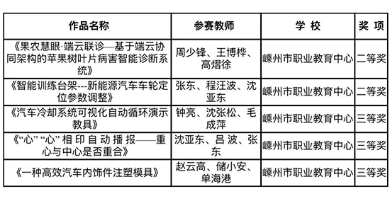 近日,由绍兴市职业教育教学研究室主办的2025年绍兴市中等职业学校教师创新技能竞赛在新昌技师学院圆满落幕。嵊州市职业教育中心的四支教师团队凭借出色的创新设计与现场表现,在众多参赛队伍中脱颖而出,充分展现了学校教师扎实的专业功底与卓越的创新能力。