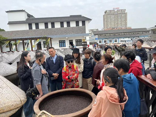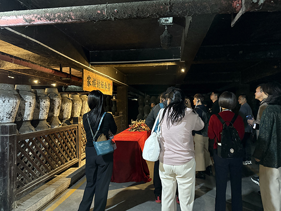行前教育结束后,一行人乘坐大巴前往海盐官酱园参观学习。官酱园作为沈荡镇百年老字号品牌,拥有四项非物质文化遗产,一直坚守百年古酿技艺。学员们首先在展厅中听取了导游的讲解,学习了官酱园的历史文化知识;接着参观了地下酒窖,感受黄酒和白酒弥漫在空气中的香味;随后,参观了酱油大晒场,亲眼目睹了晒场上整齐排列的酿晒缸,并体验了一次真正的酱缸打酱油。通过这一系列的参观和体验,学员们不仅了解了酱油的制作过程,还深刻体会到了“时光沉淀”的匠心与耐心。