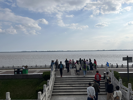 午饭后,学员们前往海宁盐官赏天下奇观——钱塘江大潮。在潮水到来前,学员们观察了江面、风向的变化,感受了钱塘江大潮的视觉与听觉震撼。此次活动不仅让学员们亲身感受了自然力量的澎湃,还领悟了“顺势而为”的人生智慧。立于钱塘江畔,学员们从那奔腾不息、声声如雷的潮涌中,感受到了生命的磅礴与豪情。