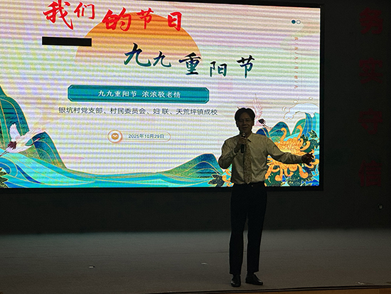 10月29日重阳佳节,天荒坪镇银坑村文化礼堂灯火通明,由安吉社区教育学院天荒坪分院(天荒坪成校)与银坑村委联合主办的“九九重阳节 浓浓敬老情”主题晚会温情上演。近百名村民齐聚一堂,其中老年葫芦丝班与歌咏班学员以精湛才艺献礼重阳,展现新时代老年人积极向上的精神风貌。