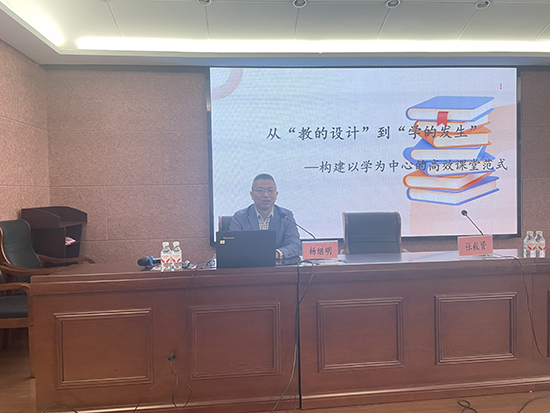 吴兴区初中社会法治教研员杨继明老师以《从“教的设计”到“学的发生”——构建以学为中心的高效课堂》为题,为参训教师提供了一场丰富、深入浅出的讲座。杨老师指出教师身份需要从“讲师”向“导师”升级,需要压缩教师的讲授时间,扩展自主探究的时间,拓展协作学习的空间,提倡教与学双向赋能。他强调教师转变角色的关键是适应学生的发展需求、推动教学理念更新,才能获得良好的教学反馈和教学质量的提升。