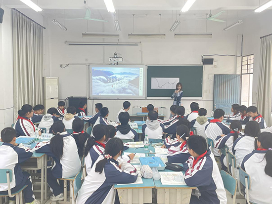 实验中学孟艳执教七年级历史《解密大秦兴亡》,以文物“考古”活动引导学生剖析秦朝“大一统之兴”与“暴政之亡”,深化以民为本治国理念认知。和平中学季家琪通过《何以文明,且看良渚》史料实证教学,揭示农业进步、阶级分化与国家形态作为文明标志的核心要素,激发中华文明自豪感。古城中学李炎炎执教的《河流与湖泊中的长江》运用地理模具与分组实践,强化学生对长江水文特征的空间感知力。小浦中学杨璐带来课程《认识生命》,她通过设计三层递进式任务,培育生命敬畏意识与健全人格素养。四节示范课集中展现史料实证、地理实践力、价值塑造等教学创新,课后开展书面评课,聚焦课程设计优化。