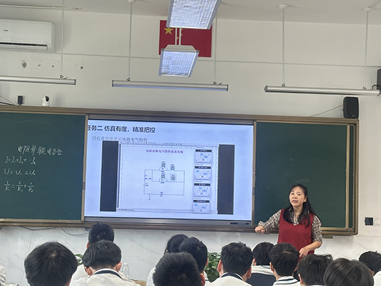 接着,由毛慧瑛老师执教《共学共享——电阻并联电路》公开课。毛老师利用“真任务”驱动:学生用数字万用表实测→Multisim仿真→数据一眼可见,理/虚/实结合,基础理论课也上出精彩。