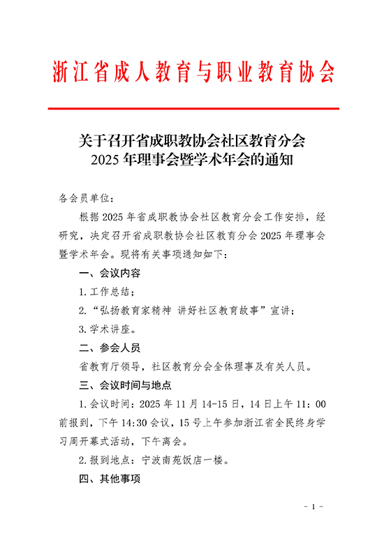 关于召开省成职教协会社区教育分会2025年理事会暨学术年会的通知.pdf