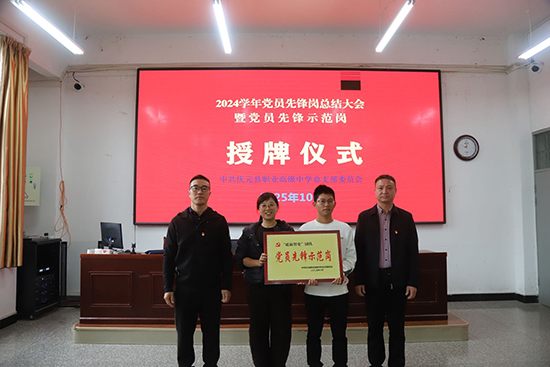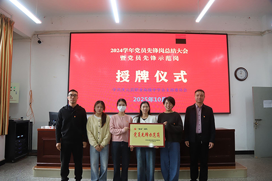 10月30日,庆元县职业高级中学党总支在学校阶梯教室举行2024学年党员先锋岗总结大会暨2025学年党员先锋示范岗授牌仪式。