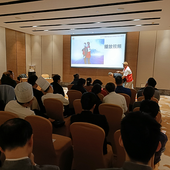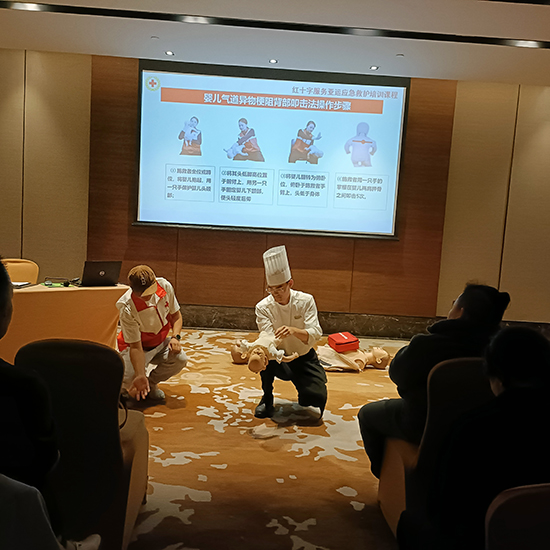 本次培训特邀浙江省红十字会一级应急救护师丁柏伟进行授课。针对酒店行业的工作特性,丁老师重点讲解了气道异物梗阻的发生机理、易发人群识别及现场救护方法,并系统教授了心肺复苏(CPR)的技能要点。