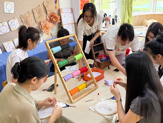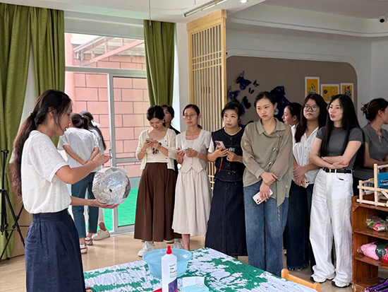 最美的教育是家园共育的互动。家委们“零距离”观摩闪亮日活动,亲身参与染绣编场馆体验。他们静下心来沉浸于手工制作中,感受其中的乐趣与不易,深刻体会到“教育最美的回响,是守护每个孩子与生俱来的独特光芒”。