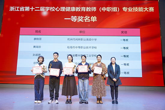 2025年11月1日,浙江省第十二届学校心理健康教育教师专业技能大赛(中职组)圆满落幕,临海市中等职业技术学校心理教师黄闺珍代表台州市参赛,凭借扎实的专业功底和沉稳的现场表现,以总分第二的好成绩斩获一等奖。