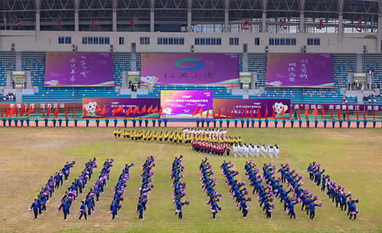 各代表队的引导员同样是开幕式上一道亮丽的风景线。70位举牌手身着统一服装,面带微笑,举止优雅,以标准的身姿和从容的步伐,引领着一支支运动员队伍有序入场。每一个精准的指引、每一次温暖的微笑,都在无声中传递出上虞这座“青春之城”的友善与温度。