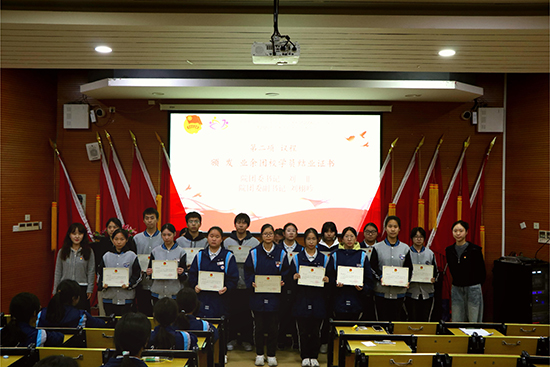 仪式第二项议程中,院团委副书记刘栩吟对 202506 期业余团校培训工作进行总结。她回顾了学员们共同学习、共同进步的历程,肯定了大家在培训期间展现出的良好精神风貌,并宣读了团校结业学员名单。随后,院团委书记刘非、院团委副书记刘栩吟为业余团校学员代表颁发结业证书。