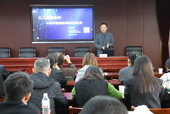 随后,海盐县教育研究中心研训员、浙江省讲师团讲师郭建平作《从工具到伙伴:AI技术重塑老年教育新生态》报告。他面对数字时代可能形成的“信息茧房”,AI技术成为关键破局点——它既能根据老年人的兴趣精准推送书画、养生等课程,又能主动引入跨领域内容,打破认知壁垒,人工智能正从辅助工具升级为老年教育的贴心伙伴,通过个性化学习路径与情感化交互,重塑着老年教育新生态。