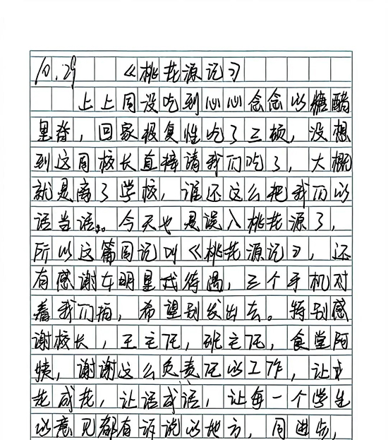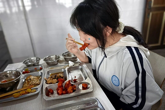 食堂的负责人循着周记里的线索,找到了那几位写下心声的同学。同学们被邀请至食堂,心心念念的糖醋里脊热气腾腾地端到了她们面前。这场始于笔尖的期盼,完成了一场温暖的“双向奔赴”。