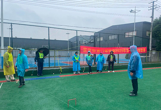 “雨脚织帘笼赛场,银发挥杆竞风流。”11月7日下午,淅沥雨丝萦绕周塘西村门球场,由慈溪市宗汉社区教育中心联合宗汉街道老龄委、老体协共同主办的门球联赛第十一轮赛事,冒雨如期开赛。湿滑的场地虽让击球难度陡增,却丝毫未减选手们的参赛热情,反而成为街道门球爱好者展现身心韧性与团队协作精神的独特赛场。