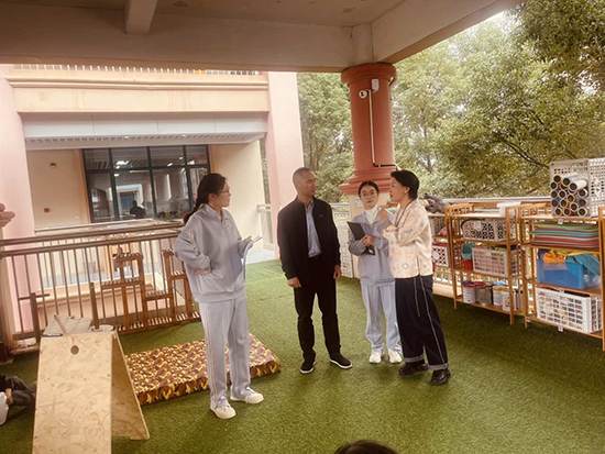 调研团队实地察看了幼儿园环境创设、园舍装饰及区域角设置情况。经前期改造升级,园舍面貌焕然一新,整洁清幽的环境中,活动区、功能区、种植区与游戏区规划规范有序。操场上,充满童趣的玩具设施适配幼儿活动需求,食堂二楼专门规划的雨天活动区域,实现了幼儿全天候室外活动的保障。教室内,区域角、观察区、休息区等功能分区布局合理,独立卫生间与洗漱区配套齐全,幼儿们礼貌热情的问候赢得调研人员一致称赞。