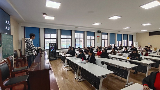 本次培训延续了理论与实践相结合的教学模式。年轻的专职音乐教师蒋泽涛首先带领学员们进行了科学、系统的发声练习。他从呼吸控制、共鸣位置到音准把握等基础环节入手,耐心指导学员们掌握正确的发声方法,为后续歌曲演唱打下坚实根基。在学员们状态调整到位后,蒋老师正式引入本次教学曲目——《雁南飞》。他细致剖析了这首歌曲的旋律特点、情感基调及演唱难点,通过逐句示范、分段教学的方式,引导学员们逐步掌握演唱技巧,深刻体会歌曲中蕴含的深情与意境。