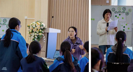 下午的活动移至诸暨市职教中心实训室继续开展。嵊州市职教中心周红老师执教的《金孔雀》歌表演与柯桥区职教中心孙逸老师的《幼儿舞蹈创编》,分别从艺术表达与创编能力两方面展示了幼儿园保教综合素养的培养路径,实现了保育与教育能力的有机融合。