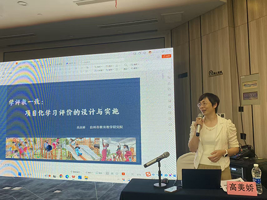 研修首日,台州市教育教学研究院幼教教研员高美娇带来专题讲座《学教评一致性:项目化学习评价设计与实施》。高老师结合多年幼教研究经验,从“学教评一致性”的核心内涵出发,深入剖析项目化学习中评价设计的关键要素。她通过具体案例拆解评价目标设定、评价工具选择、评价过程实施等实操环节,让学员们清晰掌握 “以评促学、以评促教” 的逻辑方法,为后续的观摩实践筑牢理论基础。