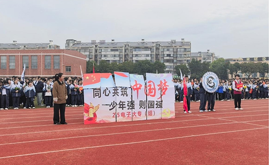 开幕式由姚新兵副校长主持。伴随着振奋人心的音乐,国旗护卫队手举五星红旗,迈着庄严铿锵的步伐率先入场,校旗方阵、会徽方阵、鲜花队、鼓乐队紧随其后。入场式上,各班方阵的展示精彩纷呈,将舞蹈、运动、汉服秀、cosplay、诗朗诵、中华传统经典故事等多种元素及人工智能、服装设计、新能源汽车、无人机等专业特色融入表演,充分展现了青年人的阳光朝气和时代精神。