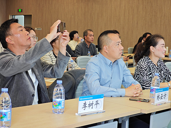 温州市瓯海职业中专集团学校副校长陈超超以《“瓯潮” 文化引领下的中职 “三瓯六潮” 德育模式探索》为题作专题讲座。她从 “理念与路径:以美立人”“实践与举措:各美其美”“辐射与传播:美美与共” 三个维度,系统分享了学校在德育工作中的探索历程与显著成效。讲座既有理论高度的深度剖析,又有具体案例的生动解读,引发了研修团队的强烈共鸣,大家纷纷表示对中职德育工作有了更清晰的思路。
