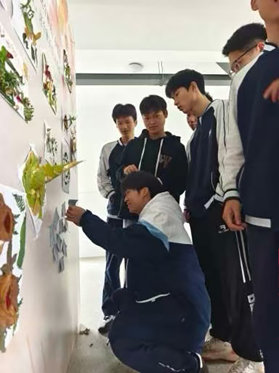 每一幅作品都是独一无二的心灵独白。或许是对秋日的热爱,或许是对生活的感悟,或许是藏在心底的小小心愿,都通过落叶的排列、色彩的搭配,被诠释得淋漓尽致。每一位师生在别人的创作里,看见相似的情绪共鸣,也发现不同的视角与创意,仿佛在与无数个有趣的灵魂,进行一场跨越时空的秋日对话。