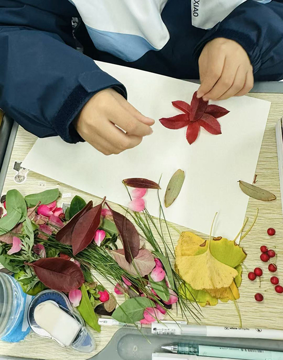 同学们俯身拾起的,不只是一片叶子,更是一个个独一无二的秋天。他们将这份秋信带回教室,开始了一场安静的创造。