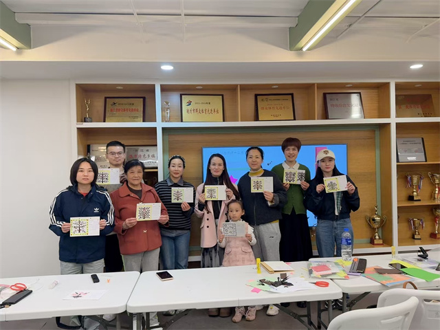 学员们热情高涨,纷纷拿起剪刀和红纸投入创作。有的学员专注于修剪枝叶的层次感,让每一片叶子都呈现出不同的卷曲弧度;有的学员则在台历边框处加入了安吉竹元素的小图案,让作品更具本土风情;还有零基础的学员在蒋老师的鼓励下,从最初的紧张生疏,到逐渐找到手感,当完整的“生命之树”剪纸台历雏形浮现时,脸上满是成就感。“以前总觉得非遗离我们很远,今天亲手剪了台历,才发现传统艺术这么有意思,以后摆在家里,每天看日历都能想起这份文化味儿。”一位学员拿着自己的作品笑着说。