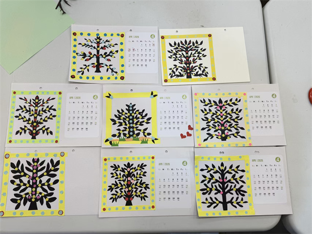 当天的核心创作环节围绕“剪纸台历之生命之树”展开。蒋娟老师介绍,“生命之树”是剪纸艺术中常见的吉祥题材,枝叶舒展象征生机盎然,果实饱满寓意收获圆满,将其与台历结合,既能让传统图案融入日常生活,又能让每一页时光都承载非遗文化的温度。为帮助不同基础的学员跟上节奏,蒋老师提前准备了分步骤的底稿模板,从树干的轮廓勾勒,到枝叶的交错布局,再到台历日期格子的巧妙嵌入,她都逐一拆解演示,遇到学员操作困惑时,还会俯身手把手指导,调整剪刀角度、修正线条走向。