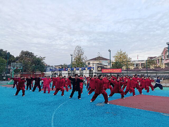 课堂上,老师耐心讲解每一个动作的要领,“沉肩坠肘”“虚实分明”,学员们认真揣摩、反复练习,从最初的动作生疏到如今的行云流水,每一次进步都凝聚着他们的汗水与热爱。太极扇的学习更是让大家兴致盎然,红色扇面开合间,刚柔相济,既有太极的沉稳,又具扇舞的潇洒,学员们在挥舞间尽显精气神,成为成校一道亮丽的风景线。