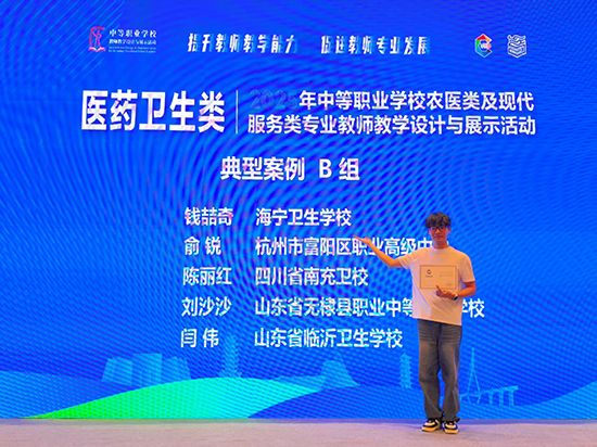 作为全国中职医药卫生类教育领域的“风向标”赛事,本次活动汇聚了来自全国各省、市、自治区的数百名优秀教师代表,参赛作品涵盖教学设计、现场说课、案例展示等多个环节,竞争异常激烈。钱喆奇老师凭借以“培养新时代护理人才”为核心的创新教学设计,紧扣临床岗位需求,深度融合“理实一体”与“思政育人”理念,以科学的架构、清晰的路径和亮眼的特色,赢得了评委专家组的一致好评,成功站上全国领奖台!
