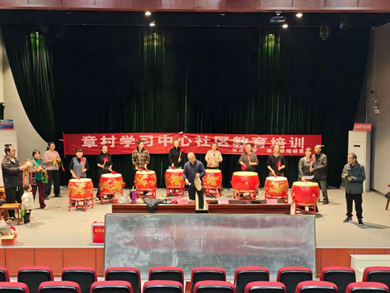 据章村学习中心负责人介绍,此次训练是社区教育“文化赋能”系列活动之一,后续还将开展多期进阶课程,帮助这支村民乐队形成表演能力。参与训练的村民陈阿姨笑着说:“以前只在年节看别人敲,现在自己上手,越练越有劲儿!”