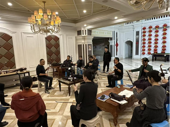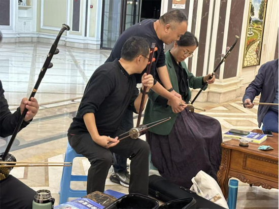 课前,陈雪龙老师早早到场,逐一接过18名学员的二胡,俯身细致调试琴弦松紧、校准音准,确保每根弦的张力都达到最佳状态。调试完毕,他端坐案前、轻执琴弓,《二泉映月》的婉转旋律与《母亲》的温情曲调缓缓流淌,瞬间化解了学员们的拘谨,让现场氛围变得温馨动人。