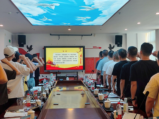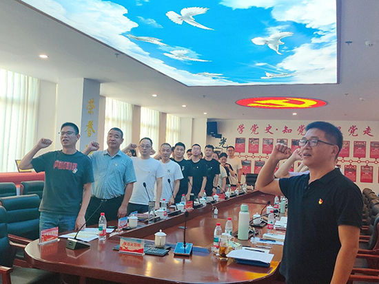 授牌结束后,全体党员起立,开启庄严的集体宣誓环节。陈书记带领大家高举右拳,以铿锵有力的声音宣读誓词,誓言中不仅蕴含着对党的教育事业的忠诚,更包含着三大党小组践行“先锋”使命、坚守“廉洁”底线的郑重承诺。“要以‘匠心’守初心,以‘文心’育新人,以‘创新’开新局”,这场宣誓既是一次灵魂的洗礼,更是三大党小组明确育人方向、强化责任担当的精神动员。