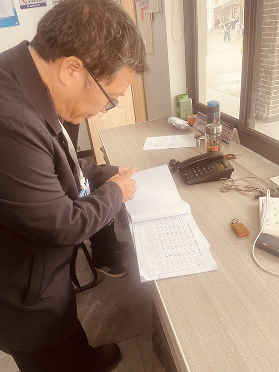 在王冕小学,督查组同样重点检查了警务室安防工作,确认保安能熟练使用各类安防器械、值班记录完善,一键报警器可快速启动。在与校长赵娜共同填写专项整治表格时,督查组发现该校严格执行上级政策法规,各项工作规范有序,对相关要求熟知于心、落实到位。