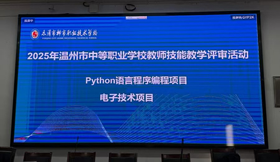 为深化“三教”改革,切实加强温州市中等职业学校“双师型”教师队伍建设,10月19日,2025年温州市中等职业学校教师技能教学评审活动(Python语言程序编程项目与电子技术项目)在乐清市柳市职业技术学校顺利举行。温州市教育教学研究院职教教研室主任单淮峰、副主任蔡连森负责本次评审活动。本次评审以“以评促教、以评促研”为导向,旨在全面检验并提升中职教师的专业素养与技能教学水平。