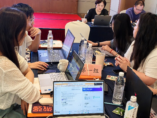 举办 “数智创生” 教师 AI 技能竞赛,以 “现场命题、限时创作” 为核心规则,12 个教研组同台竞技。文化课组需用 AI 设计教学资源包并标注应用环节,专业群组则聚焦实操场景 —— 信息组用 AI 分析成绩设计靶向题库,数控组生成 HTML 交互动画,美术组现场创作 AI 效果图,经贸组提交 AI 操作优化对比,在 “比、学、赶、超” 中检验普及成果,强化技术应用能力。
