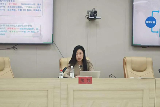 陆佳老师则从技能训练角度,分享了《阶梯式通道——服装技能训练实践总结》。她提出的“阶梯式技能人才培养模式”,通过清晰的阶梯目标与科学的训练路径,有效破解了技能教学中“循序渐进”的难题,为当地技能竞赛训练提供了新思路。