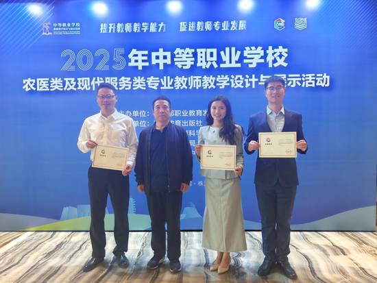 11月15日至16日,在湖南株洲举行的2025年全国中等职业学校农医类及现代服务类专业教师教学设计与展示活动中,浙江开放大学富阳学院教师鲁浙栋、俞锐和陈露凭借扎实的教学功底、创新的设计理念,斩获全国一等奖,获评“典型案例展示者”。