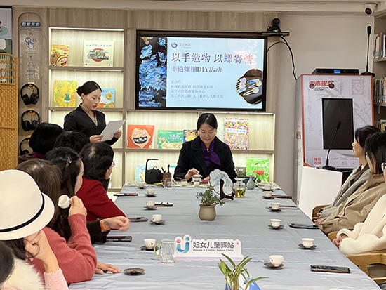 11月20日下午,新碶街道社教中心玉兰分中心二楼暖意融融,一场以“以手造物,以螺寄情”为主题的非遗螺钿DIY活动在此开展。本次活动吸引了辖区居民及10余位台湾太太参与,以传统工艺为纽带,既传承了非遗文化,也拉近了两岸同胞的社区归属感。