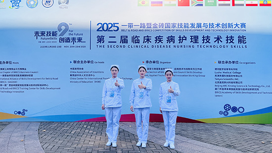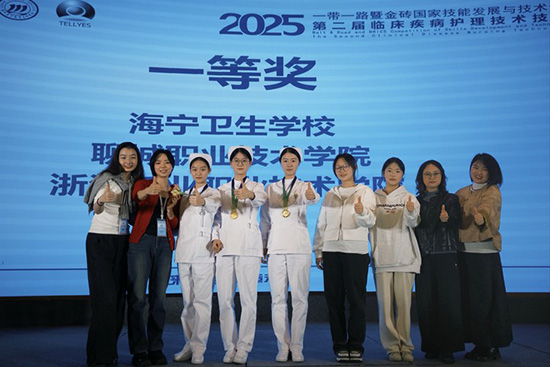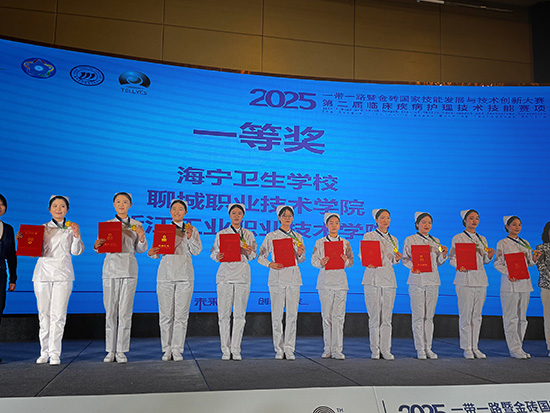捷报频传,硕果相继!继海宁卫生学校学子在2025年世界职业院校技能大赛康复治疗与护理赛道斩获金奖并历史性晋级冠军总决赛之后,海宁卫校(海宁市综合高级中学)再创佳绩。在11月20日至23日于河南漯河医学高等专科学校举办的“2025‘一带一路’暨金砖国家技能发展与技术创新大赛之第二届临床疾病护理技术技能赛项”中,学校代表队从全国49支中高职优秀队伍中脱颖而出,再获一等奖殊荣,续写了“以赛促教”的辉煌篇章。