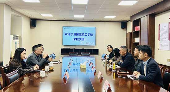 11月25日上午,宁波第三技工学校党支部书记兼校长徐飞波一行5人来到海宁卫生学校(海宁市综合高级中学)开展交流活动。海宁卫生学校党总支书记顾忠强、校长陈杰、副校长沈孝丽等领导热情接待并陪同交流。