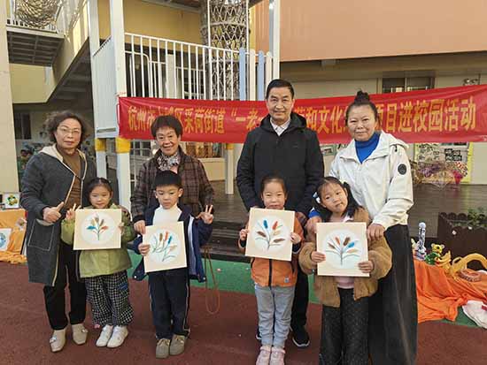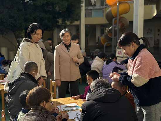 活动中,浙江开放大学赵师红博士、杭州社区大学郭维娜、滨江区社区学院叶剑炜老师也来到现场,一边观摩祖辈们的创作,一边交流研讨老少共学组织形式,还不时拿起作品点赞:“这样的代际互动太有意义了,既传承了非遗技艺,又拉近了祖孙感情。”