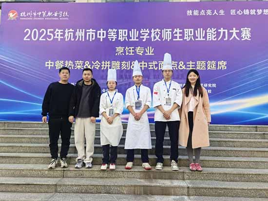 金秋时节,硕果飘香;赛场竞技,捷报频传!近日,2025年杭州市中等职业学校师生职业能力大赛(烹饪、旅服专业)圆满落幕。杭州市良渚职业高级中学旅烹专业师生凭借扎实的专业技能、出色的应变能力和默契的团队协作,在激烈角逐中脱颖而出,共揽获2金5银3铜的亮眼佳绩,为学校赢得了荣誉!