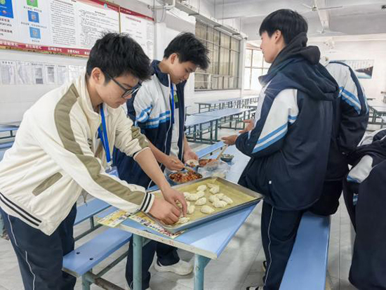 活动最温馨的环节当属“包福饺”了。同学们围坐在一起,亲手包起了饺子:熟练的同学大显身手,动作一气呵成;初次尝试的同学虽然动作生疏,但却专注仔细、别出心裁。在食堂阿姨的协助下,同学们亲手包制的饺子热气腾腾地出锅了,大家在欢声笑语中分享着劳动的成果,感受这最暖人心的人间烟火,不时还有同学打趣道:“这是谁包的饺子,这么奇形怪状!”至此,这场精彩纷呈的游园会画上了一个温暖而圆满的句号。