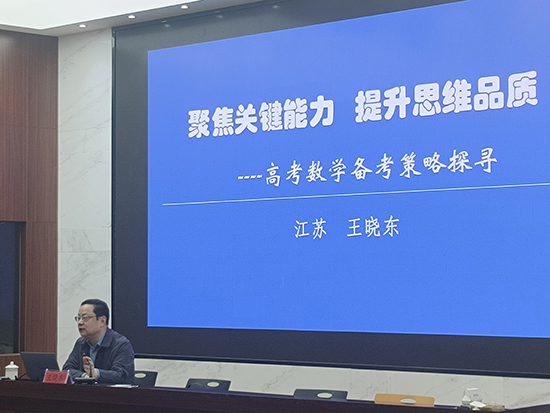 培训首阶段聚焦高三复习备考。宁波市教育局教研室高中数学教研员冯斌作专题讲座《“三新”背景下高三数学复习课的再思考》,讲座立足“三轮驱动”复习观,以小见大,强调了“三新”背景下的高考命题导向,并结合近年真题,对首轮复习提出七点关键追问,凸显了“回归教材、回归基础、回归本质”的教学思想,进而发出“聚焦高阶思维、优化课程设计”的深刻呼吁。江苏省启东市教师发展中心主任王晓东作专题讲座《聚焦关键能力 提升思维品质——高考数学备考策略探寻》,讲座紧扣“从高考之变中把握不变”与“在有序复习中提升质量”两大核心,并从“题目挑选”“资料编写”“训练测试”“集体研究”“拓宽视野”等多个方面,对高三复习课提出了恳切建议。
