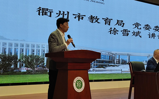 衢州市教育局党委委员、总督学徐学斌的发言围绕衢州职业教育的特色与发展展开,重点阐述了其在资源统筹、产教融合等方面取得的成果。他希望本次活动的成功举办能成为新起点,为衢州中职教育“提质培优”开拓新局面。