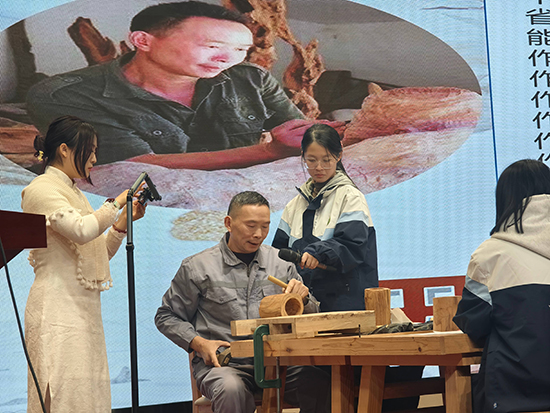 26日下午,浙江省衢州旅游学校专业课教师胡舒畅与企业根雕大师鲍水清共同带来的《双雕合璧:根木相融的花鸟笔筒创作》双师课堂,展示了鲜明的地域教学特色。衢州市职教教研员张卫民予以高度评价,并肯定了其在传承地方文化与专业创新方面的探索价值。