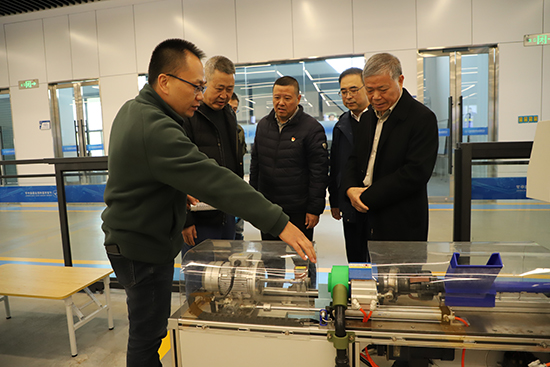 在鄞州职高党委书记卢科和校长张武剑的带领下,陈安平副主席一行实地参观了校园,深入了解教学环境与设施建设。面对崭新的教学环境和先进的教学设备,他们深切感受到时代发展与教育质量的显著提升。在实训场地,现代化的金属3D打印技术以及由学校教师自主研发、并获得实用新型专利的“智能薄壁冲孔铝管内壁去毛刺机”等成果,更是令他们频频驻足,赞叹不已。