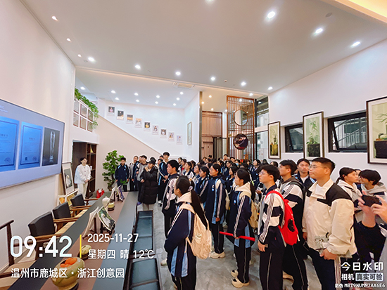 活动伊始,师生团队便抵达浙江创意园,受到了凯胜数字贸易园胡总、浙江工贸职业技术学院教师团队及创意园企业代表的热情接待。在这一站,师生团队共同触摸非遗温度,感受着文化创新。